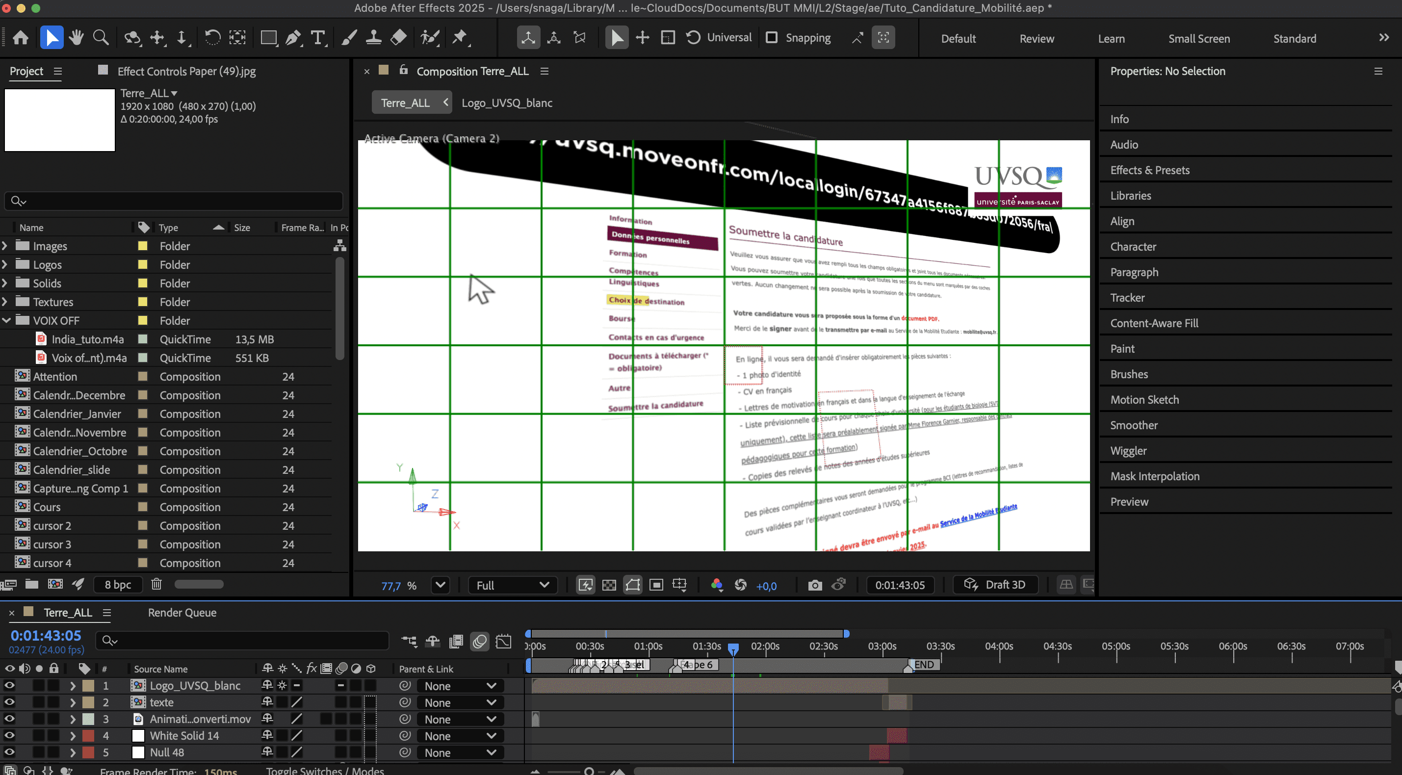 Creation of a tutorial for UVSQ students on how to go study abroad. Produced entirely in motion design using After Effects, it includes numerous animations, effects, and 3D elements !